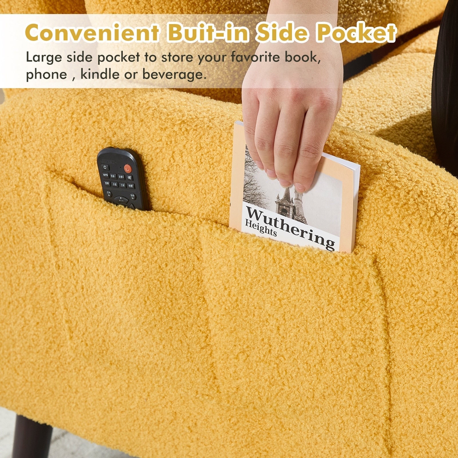 - Versatile Storage Solution: The accent chair with ottoman offers a convenient storage solution with a large pocket on the side of the chair. This additional feature allows you to keep essential items within easy reach, enhancing the functionality of your living space while maintaining tidiness.