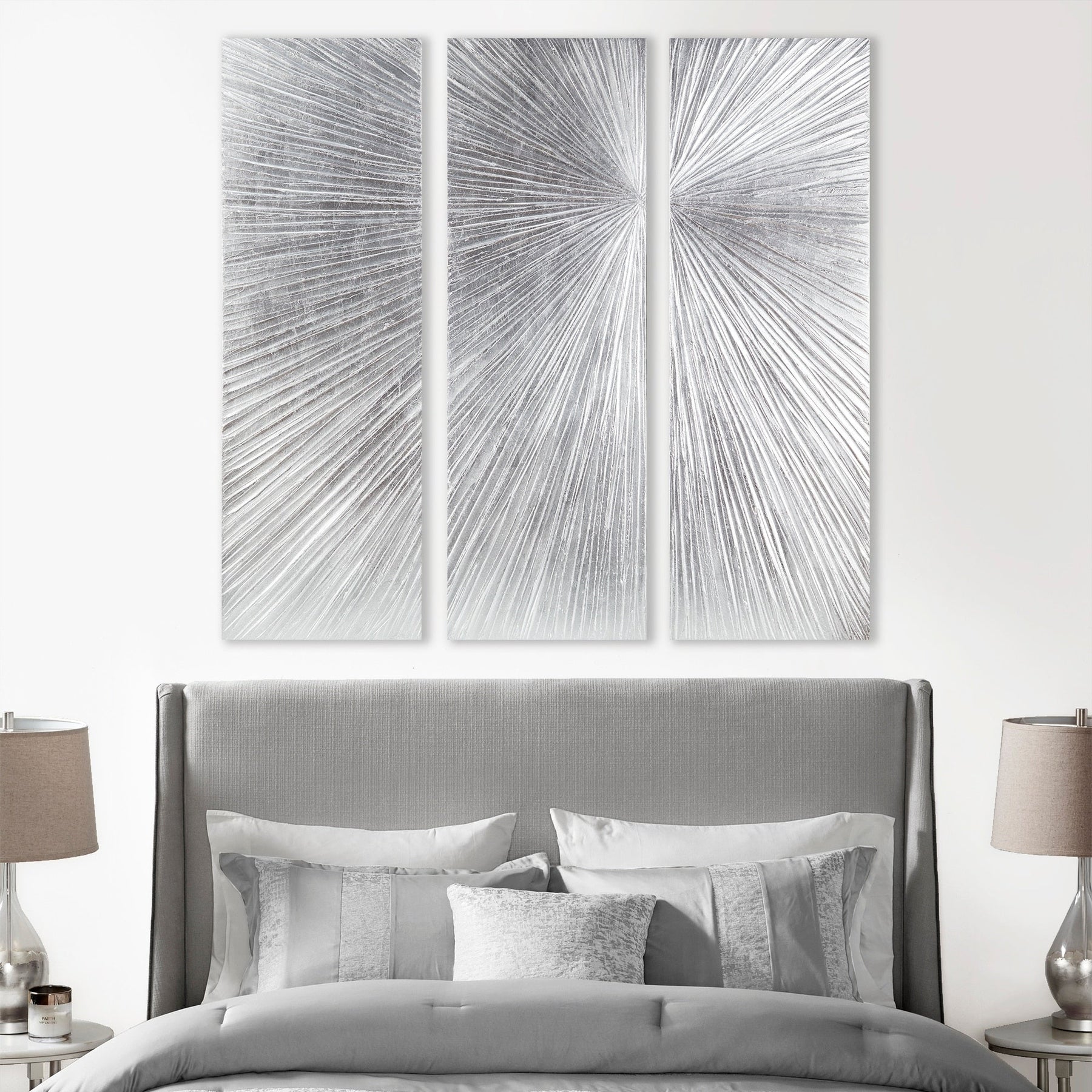 Illuminate your space with the captivating elegance of the Sunburst Hand Painted Triptych Wall Art Set. This striking 3-piece set showcases a modern abstract sunburst design, enhanced by a gold metallic finish that adds warmth and sophistication to any room. Crafted from dimensional resin with a heavy texture detail, each panel brings a gallery-worthy presence to your décor. Each piece is thoughtfully designed for vertical hanging with D-ring hangers, making installation effortless. Whether placed in a living room, dining area, or entryway, the shimmering gold tones and dynamic design create an eye-catching focal point.Transform your home into a space of refined luxury with the Sunburst Triptych Wall Art Set — a stunning reflection of modern artistry.