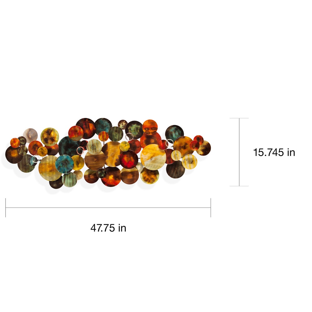 Brighten up your decor with this glossy sculpture, made of sheet metal and hand-painted with reflective glaze. Overlapping circles are arranged on metal tubing and painted in multicolored hues for a unique contemporary look.