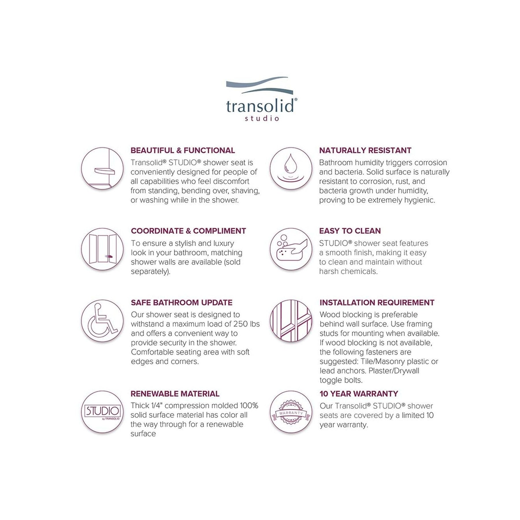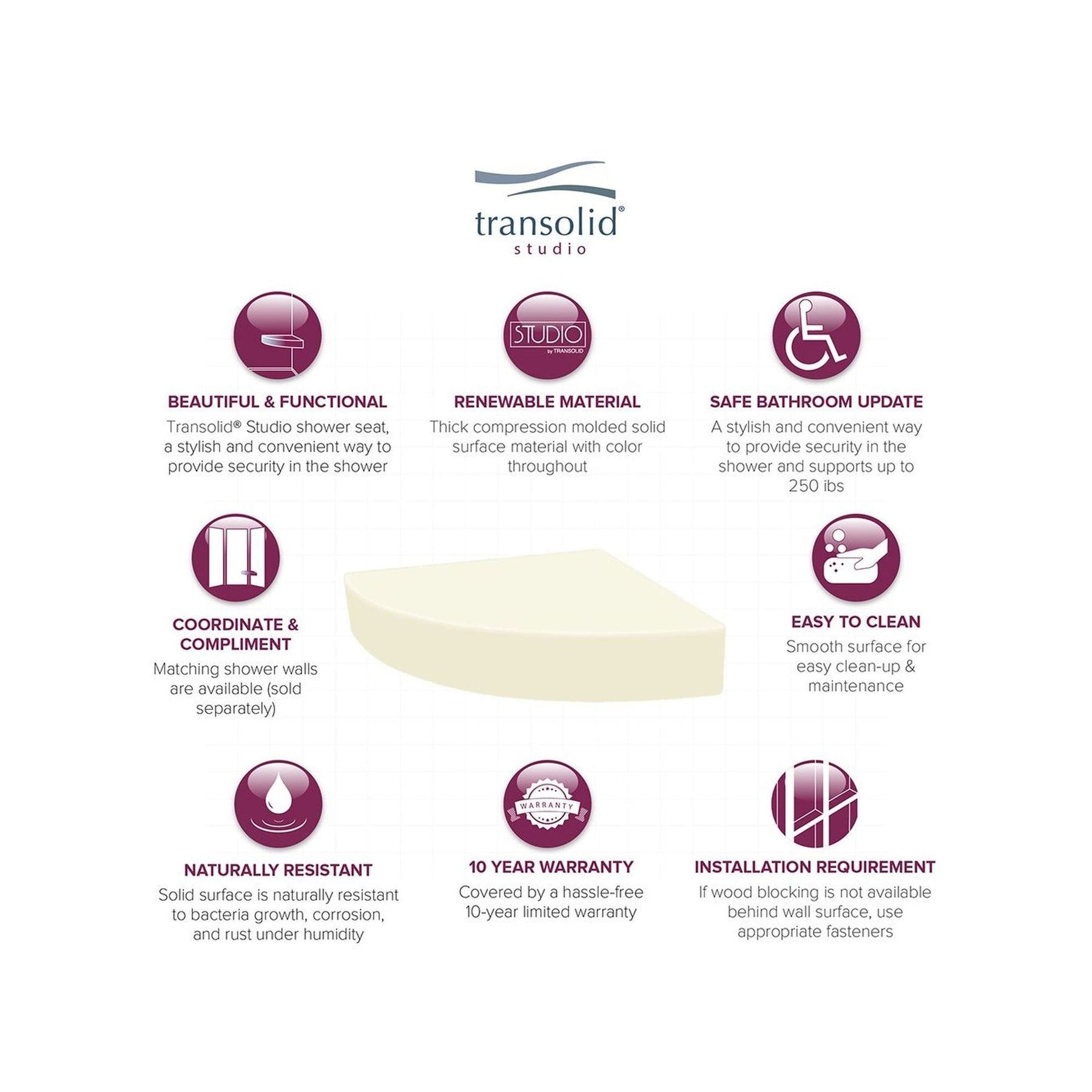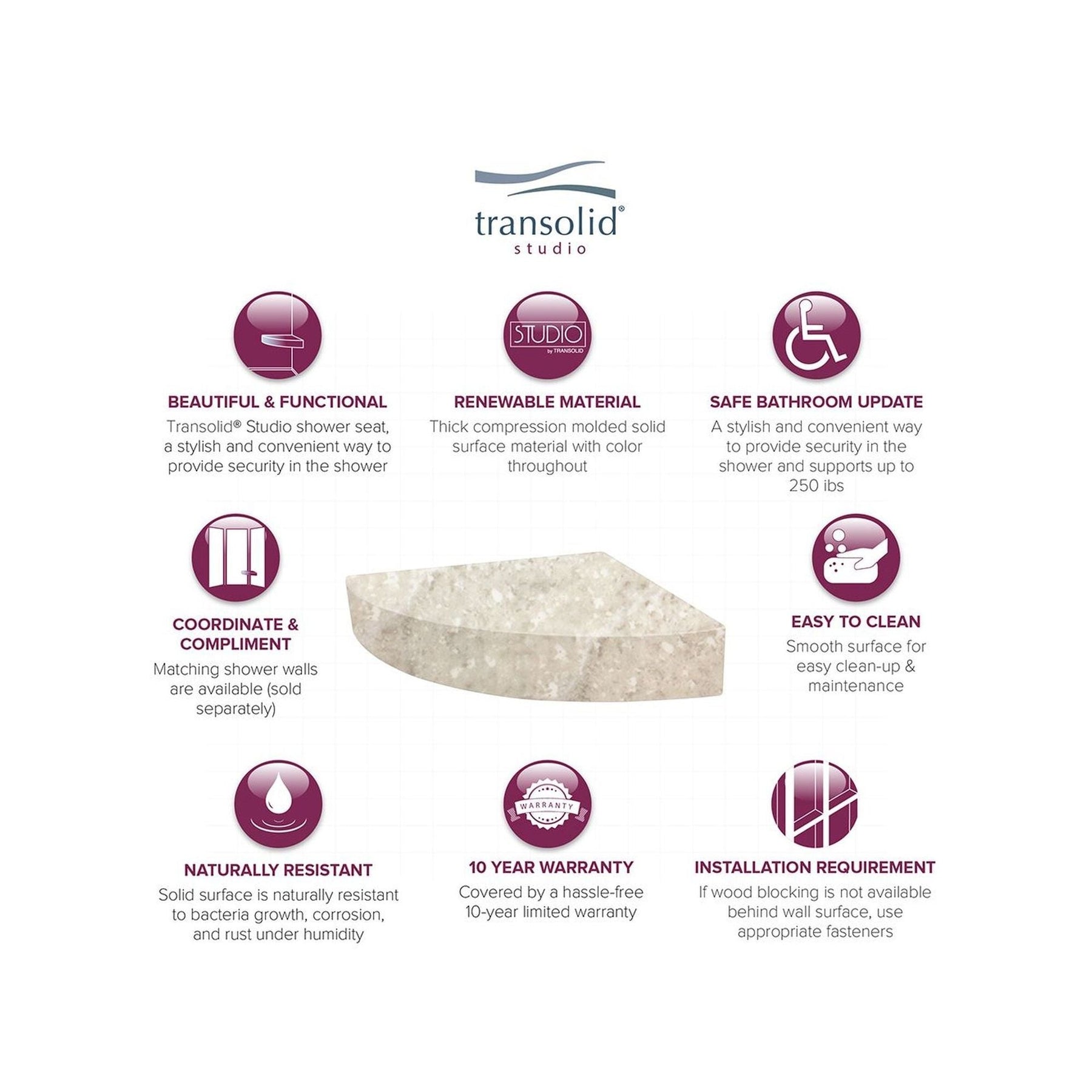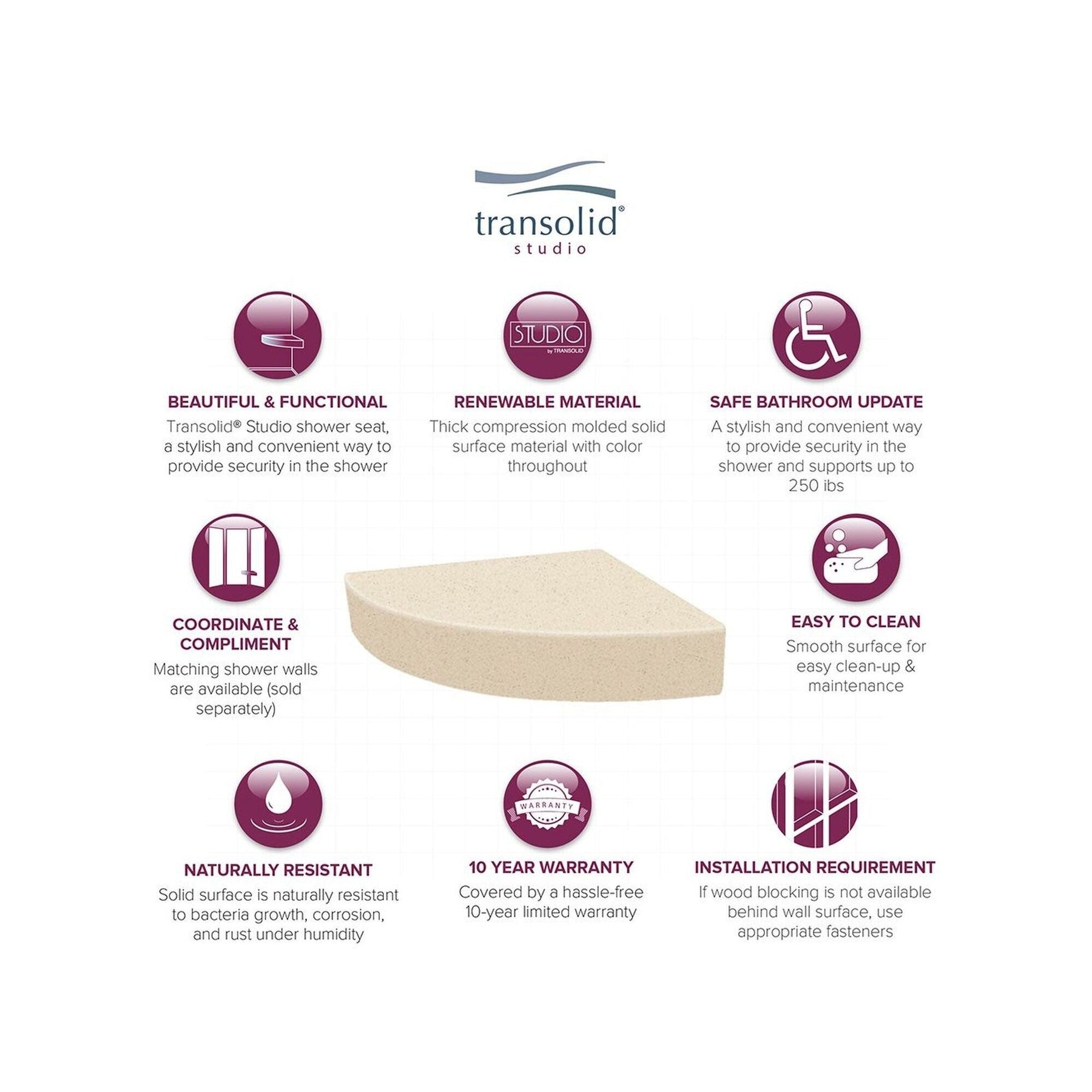 Transolid Studio 14-In X 14-In Solid Surface Wall-Mount Corner Shower Seat - 14.5 x 14.25 x 3