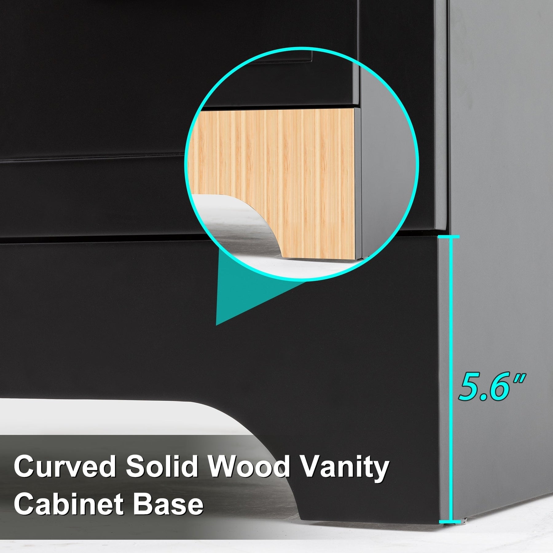 Upgrade your bathroom with this complete vanity set featuring eye-catching wavy line detailing. Available in 3 versatile sizes (30', 36', 48') and 3 on-trend colors (White, Green, Black), this freestanding vanity delivers contemporary style with exceptional storage. Premium wood construction ensures durability, while the included ceramic sink (30'/36') and lightweight SMC resin sink (48') offers easy maintenance.