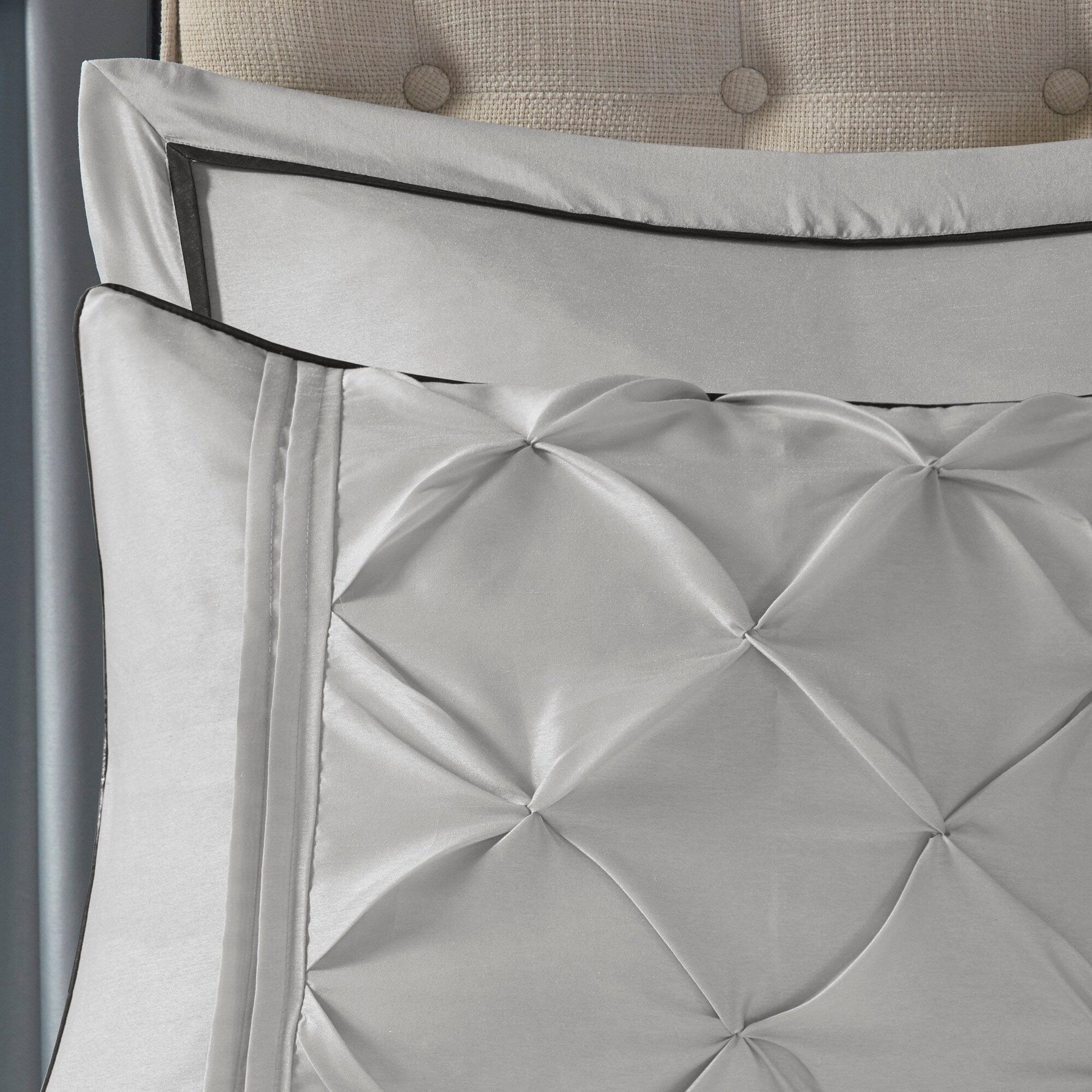 - Transitional 24 piece room in a bag features faux silk polyoni tufted with border frame