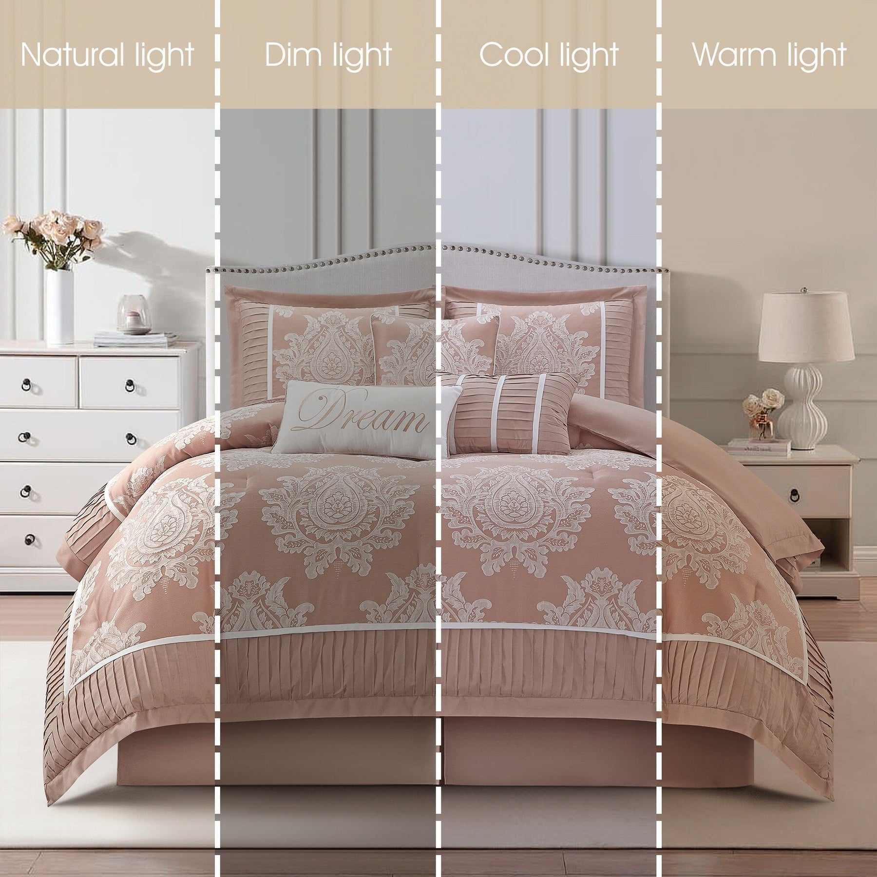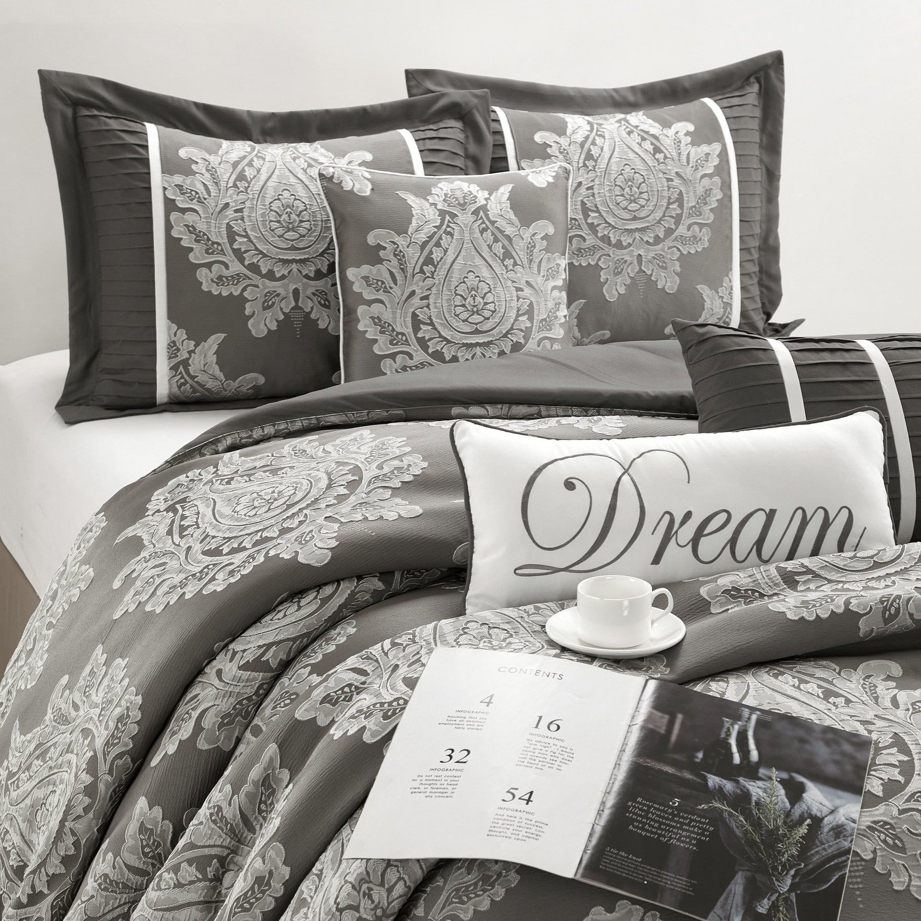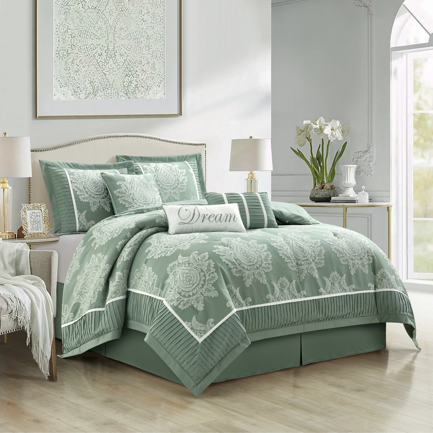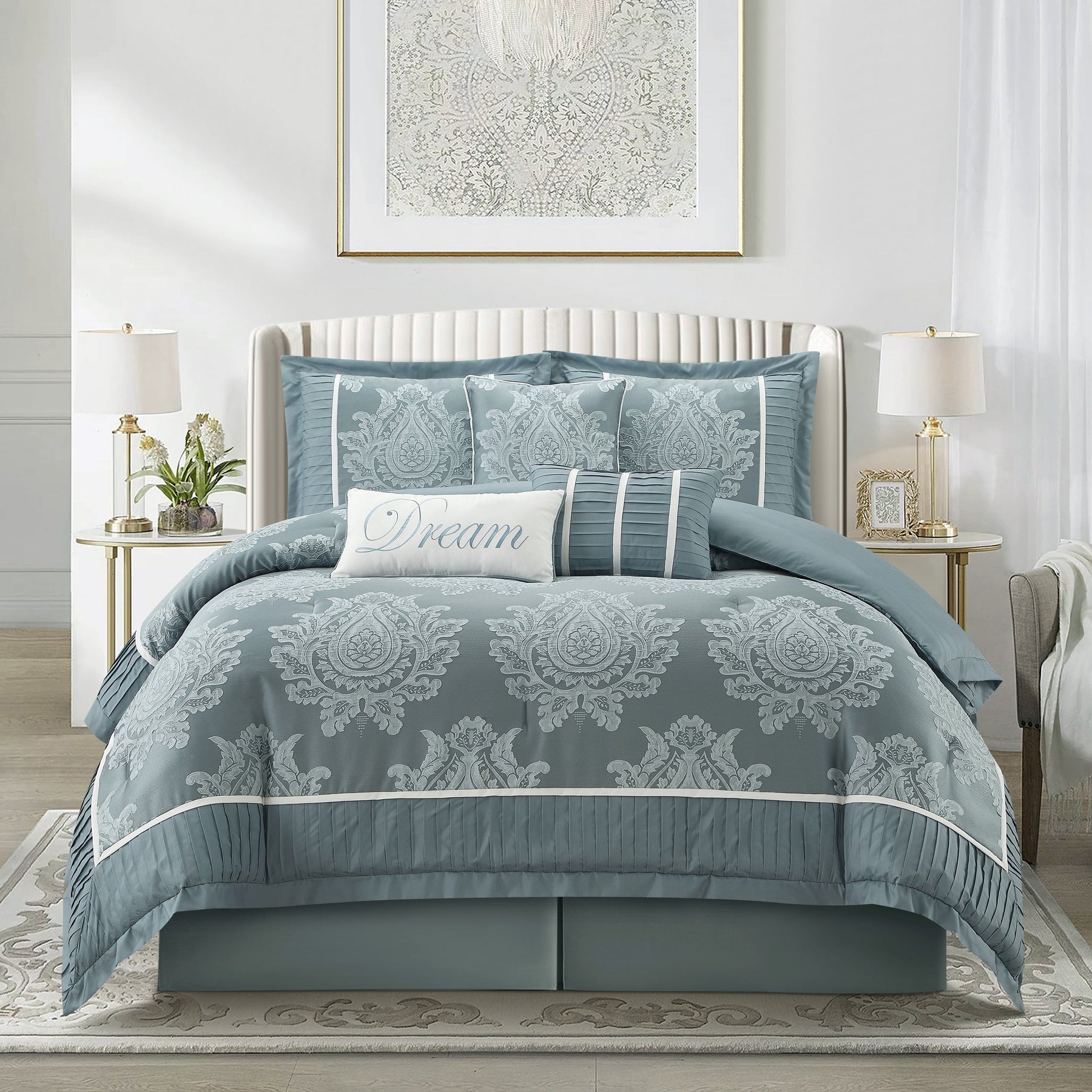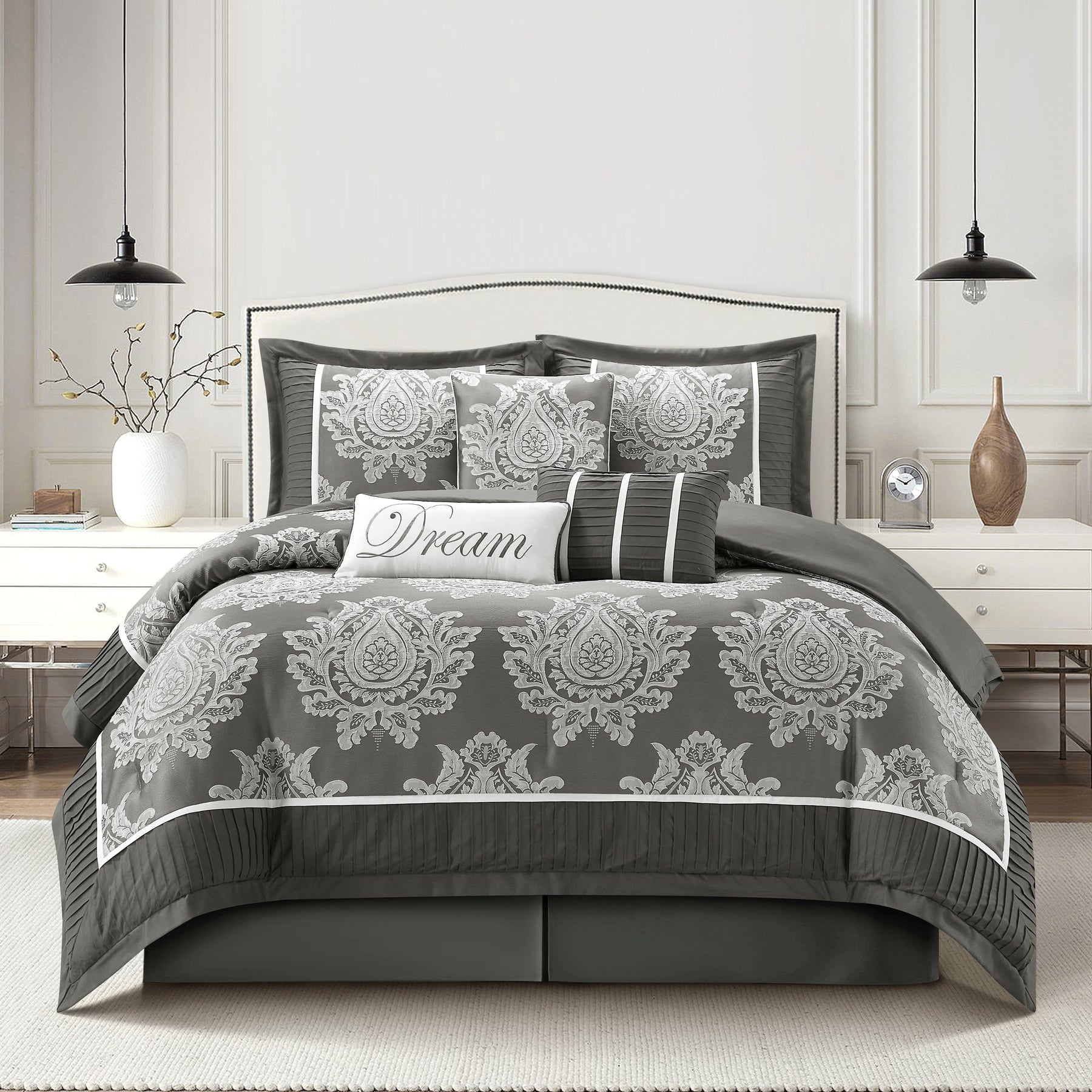 • Features: Elegant damask design and neutral color scheme to complement any traditional/glam bedroom décor