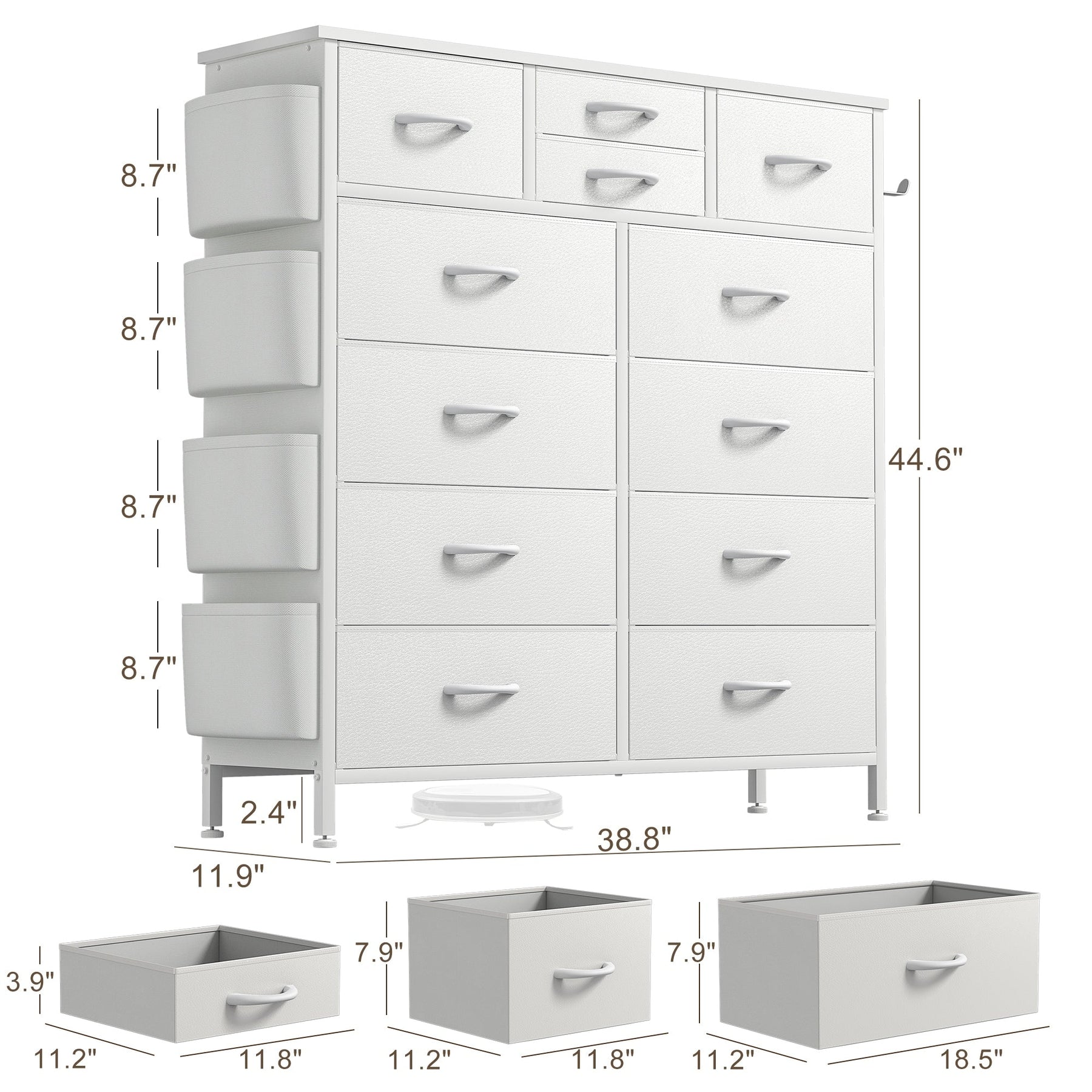 - 【Ample Storage Space】Roomy capacity with 12 deep fabric drawers. 3 different sizes of fabric drawer chests are great for organizing your clothes, blankets, scarves, socks, and others.