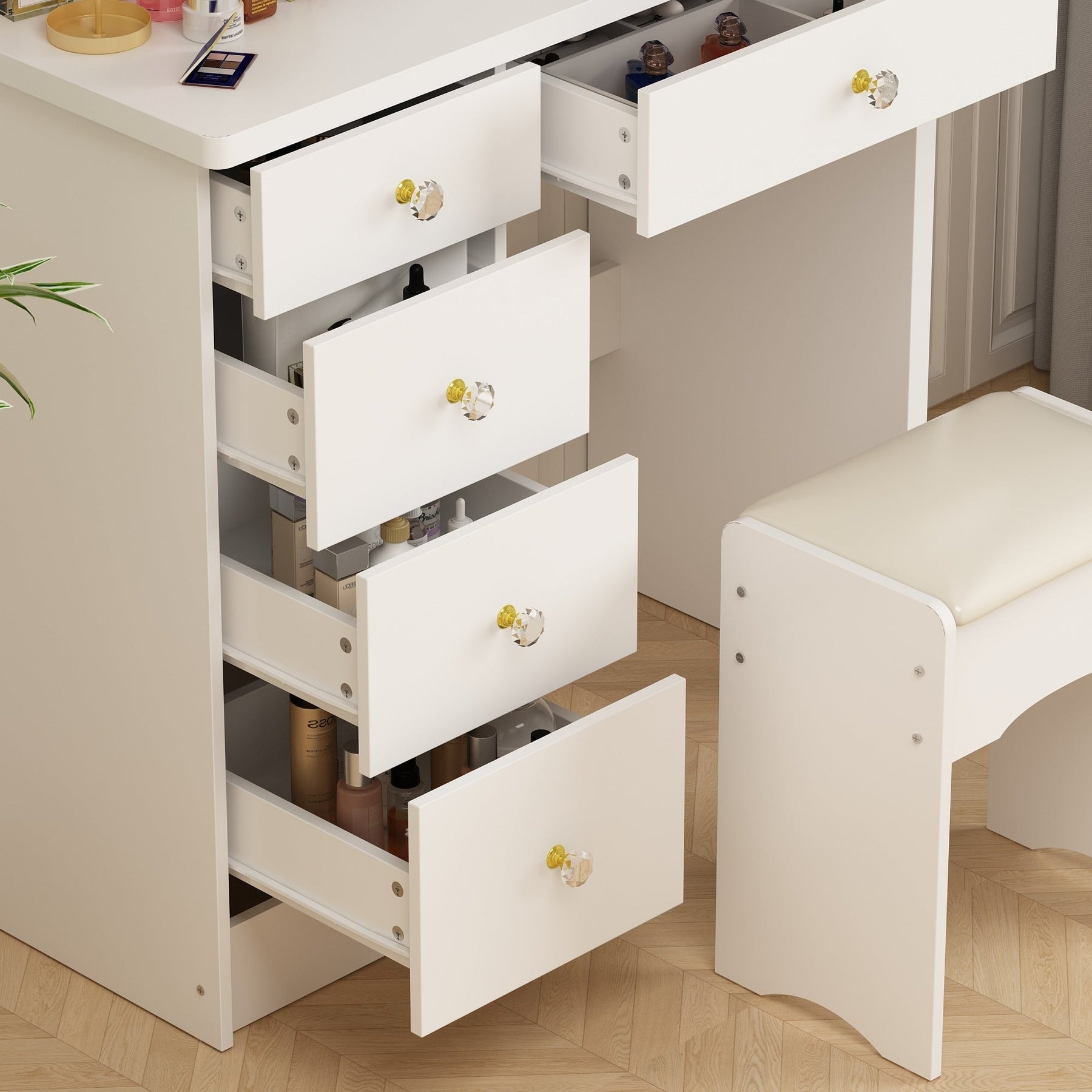 - 5 spacious drawers for ample storage of makeup, jewelry, and hair accessories