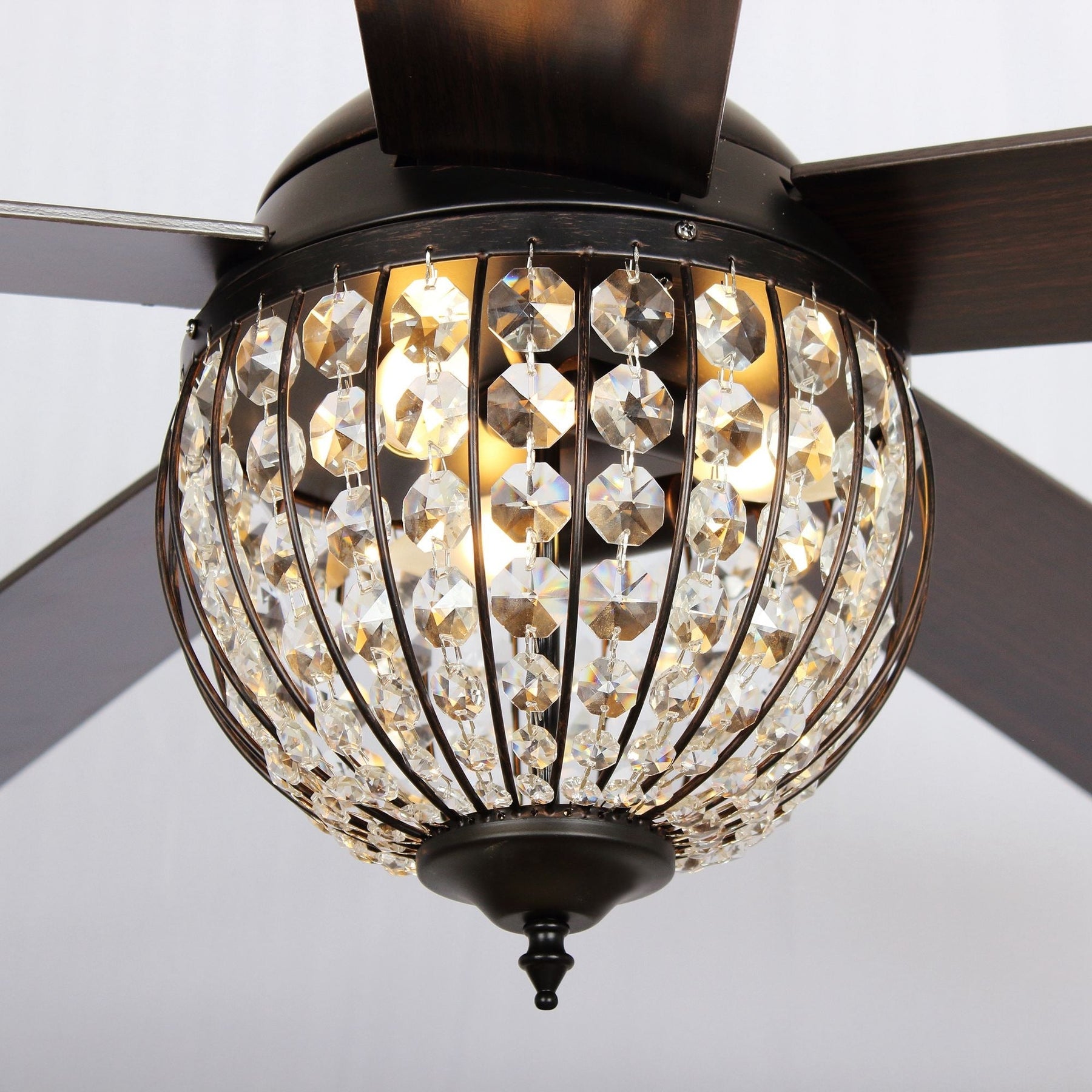 52 Industrial Black Wood 5-blade Crystal Ceiling Fan with Remote