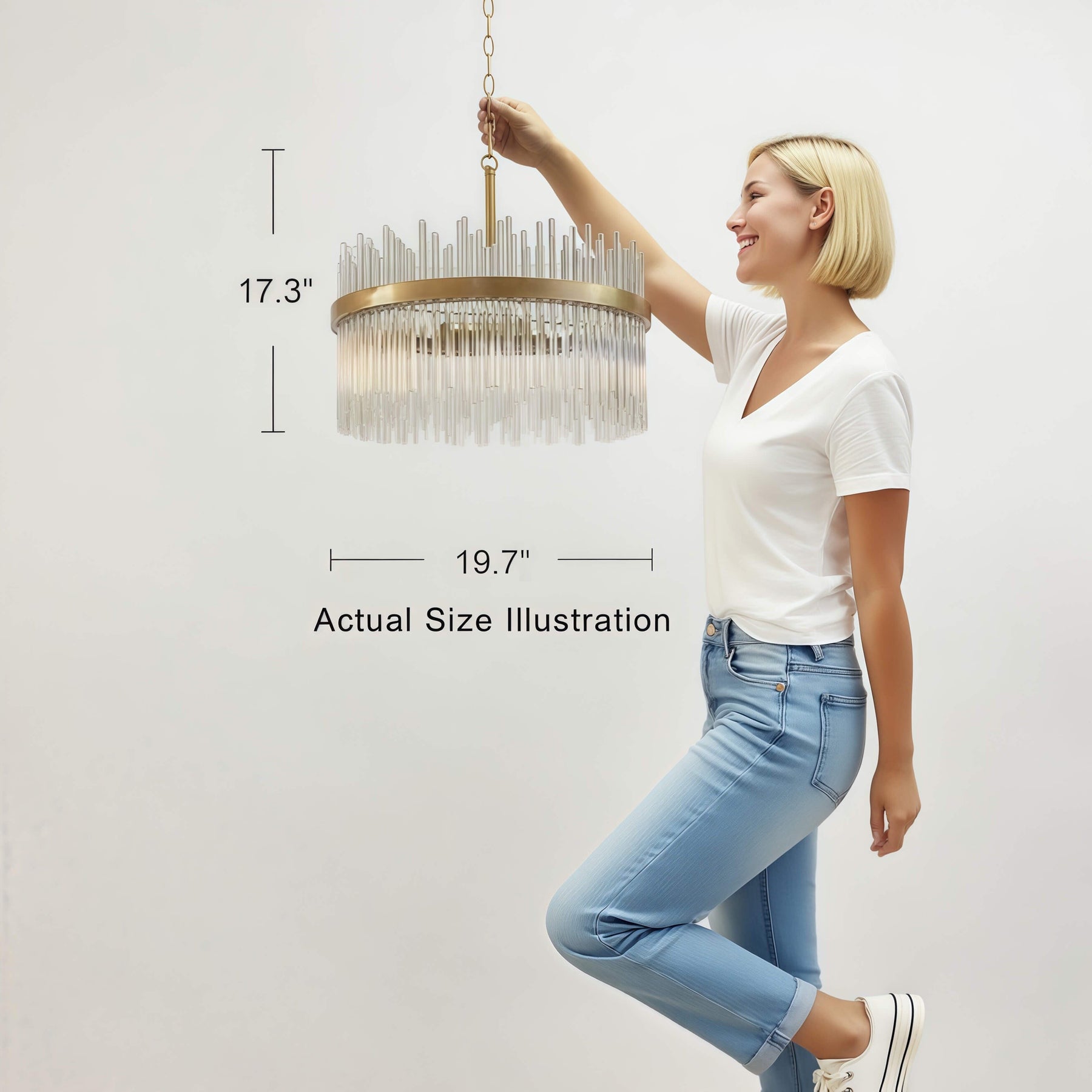 - Fixture finish: Shiny Bronze finish. Cylindrical clear glass crystal bars.