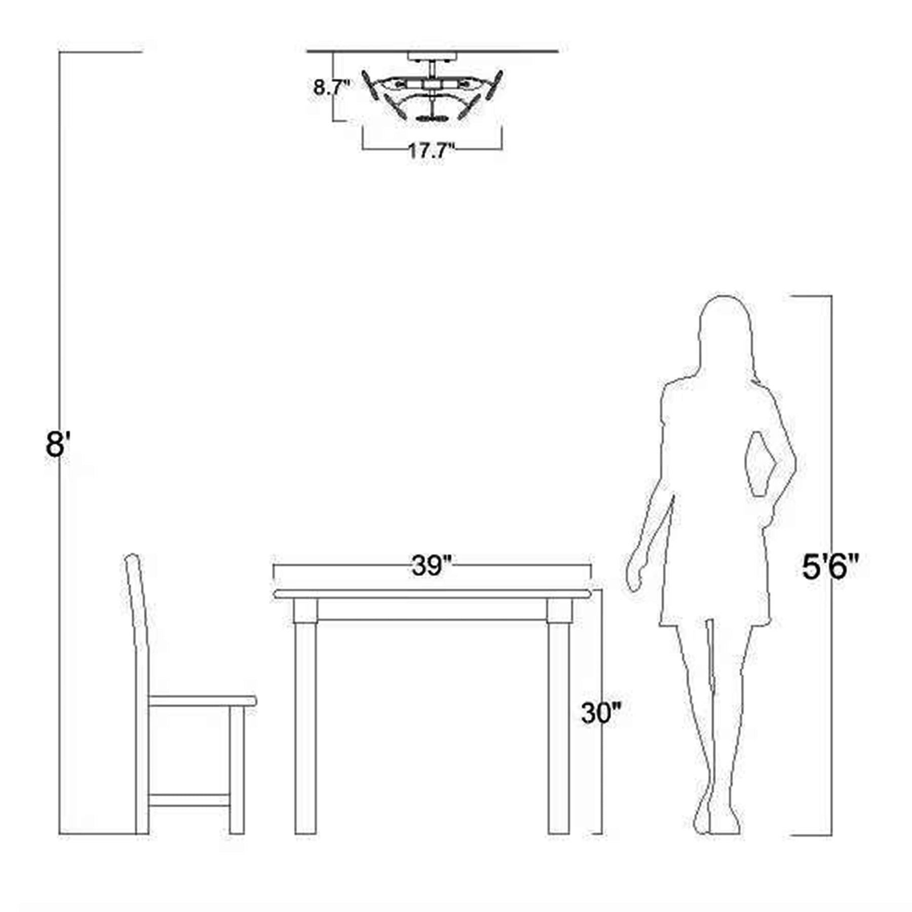 - Fixture: 17.7 inches in diameter x 8.7 inches H; Ceiling plate: 5.9 inches in diameter x 1 inch H.