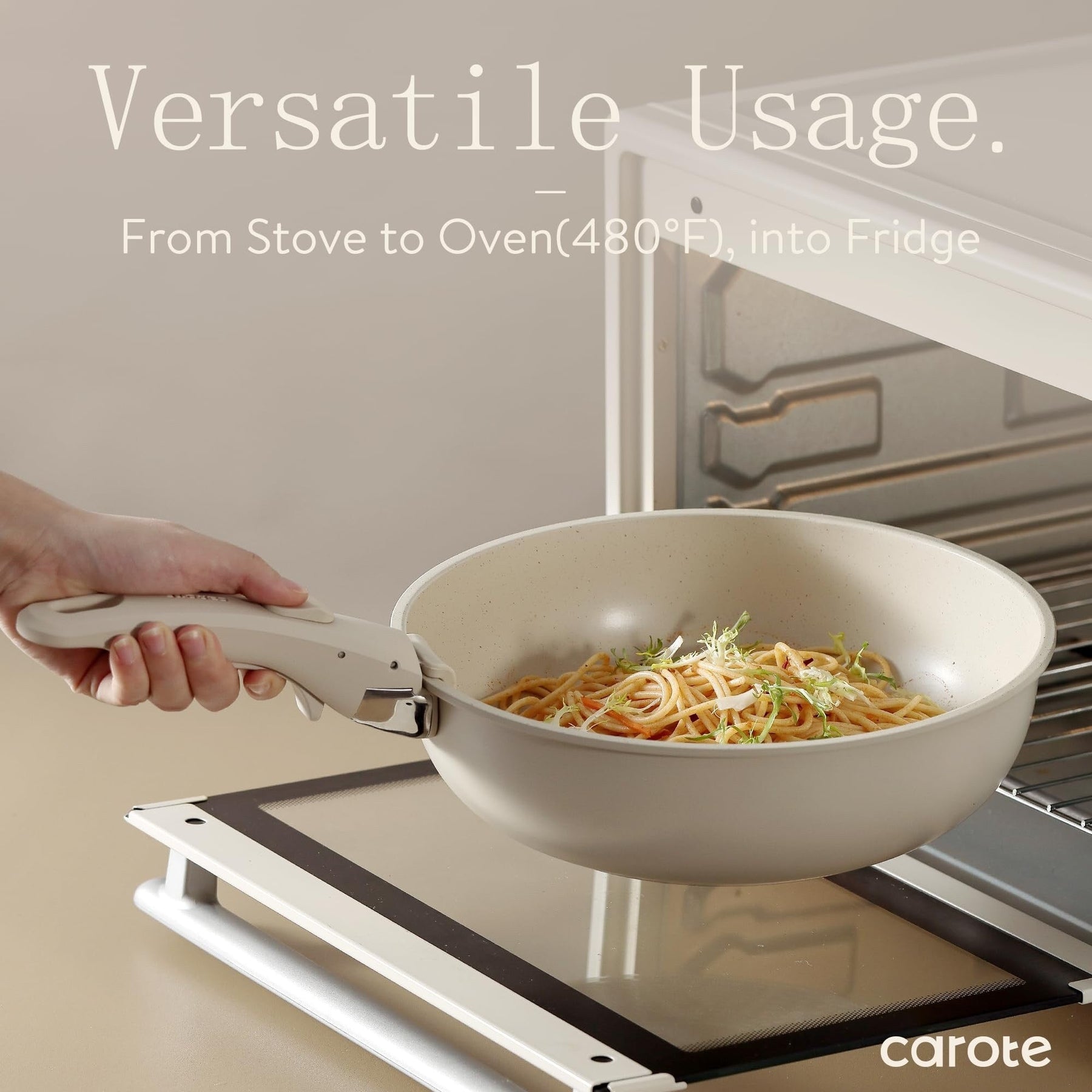 For a Clutter-free cupboard: Optimal storage and easy stacking with the handles off saves up to 70% more space of detachable handle pots and pans set.