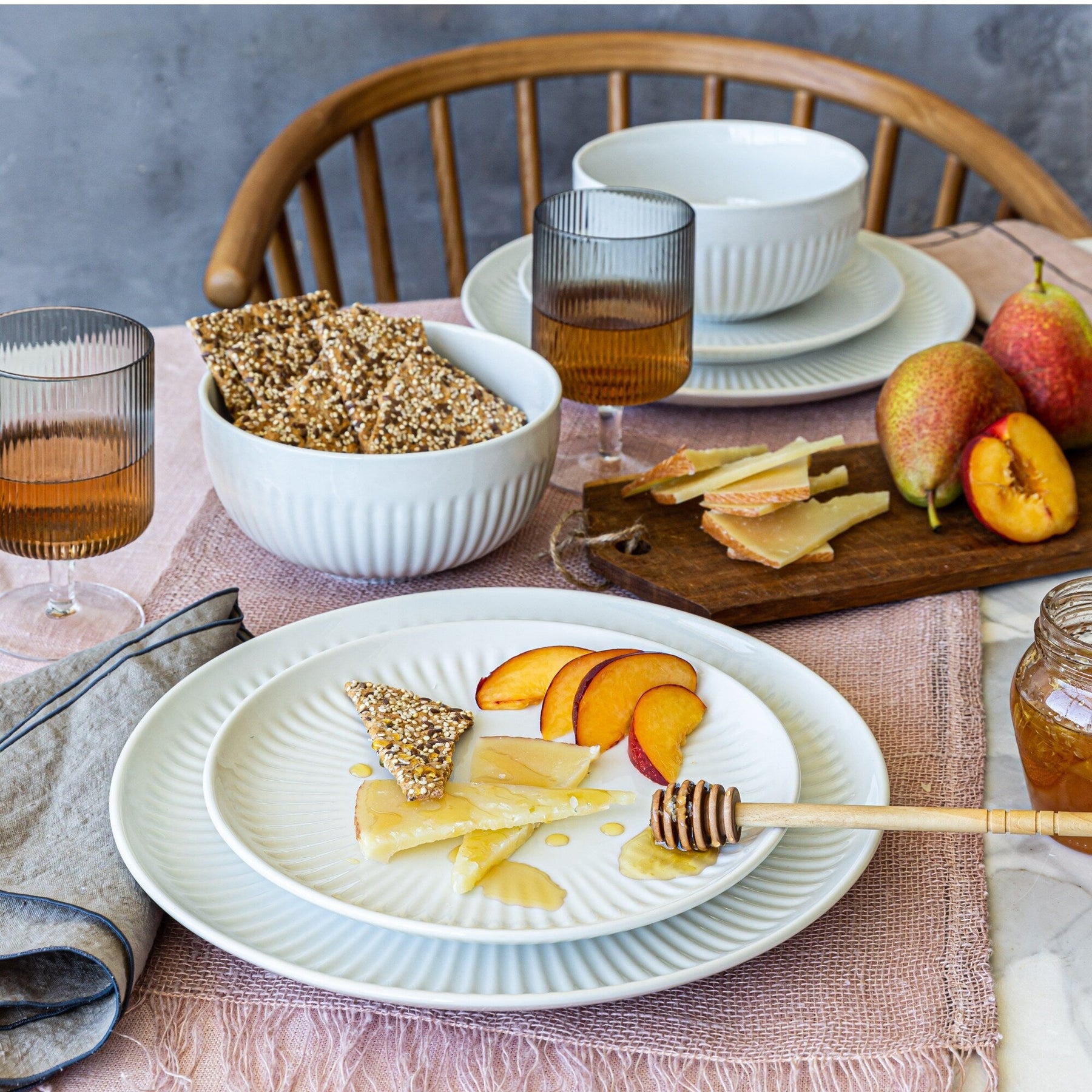 Our 24-Piece Fluted Dinnerware Set brings practicality and style to your table with service for 6. This comprehensive dinnerware set includes plates and bowls for six, ensuring you're well-prepared for any meal. The subtle fluted design adds a touch of texture to your dining experience, making it perfect for everyday use or casual gatherings with friends and family. Choose this dish set for a reliable addition to your kitchen that effortlessly combines functionality and flair, enhancing your daily dining routine.
