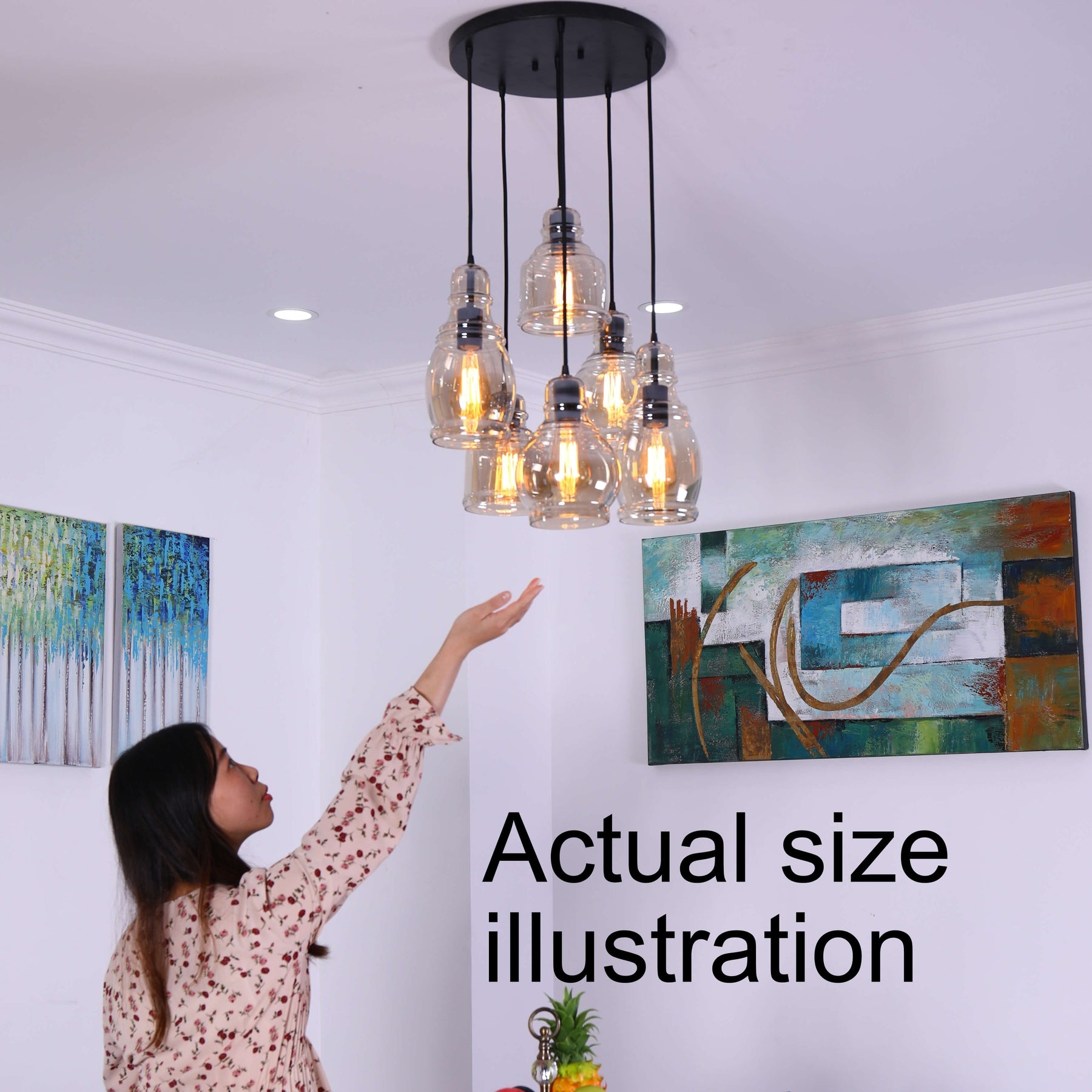 Elevate your home decor with Mariana's elegant and artistic pendant light. The transitional style, antique black finish, and cognac glass shades create a unique and contemporary look that will enhance any space. This six-light fixture is perfect for installation above a dining table or in a dim entryway to add a touch of sophistication.