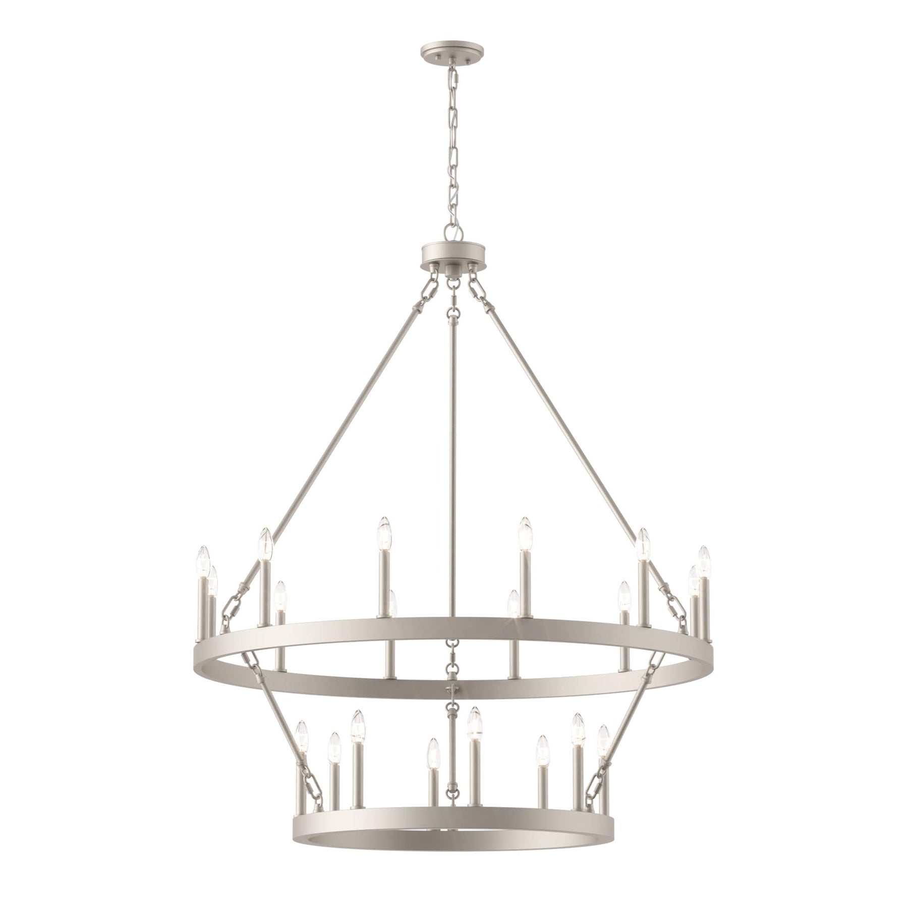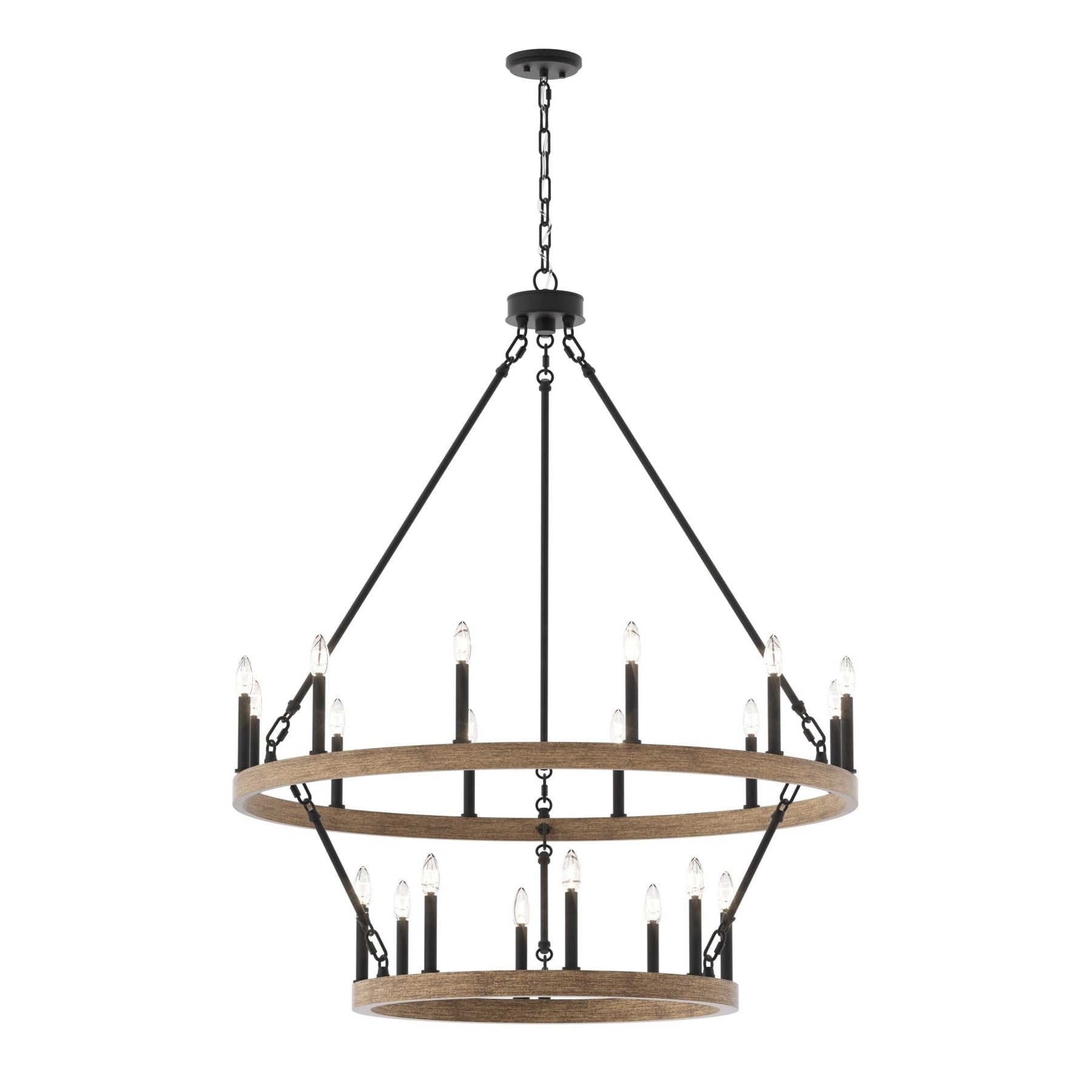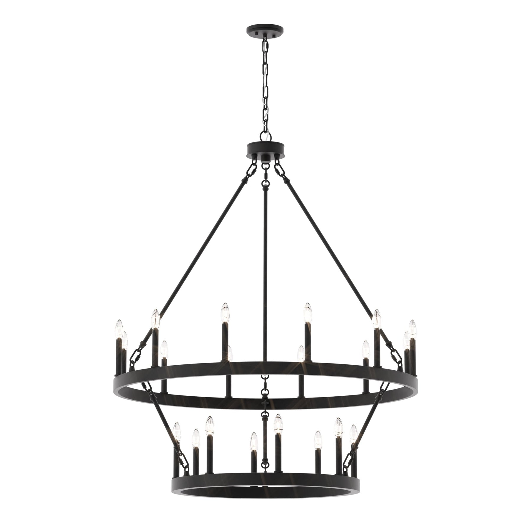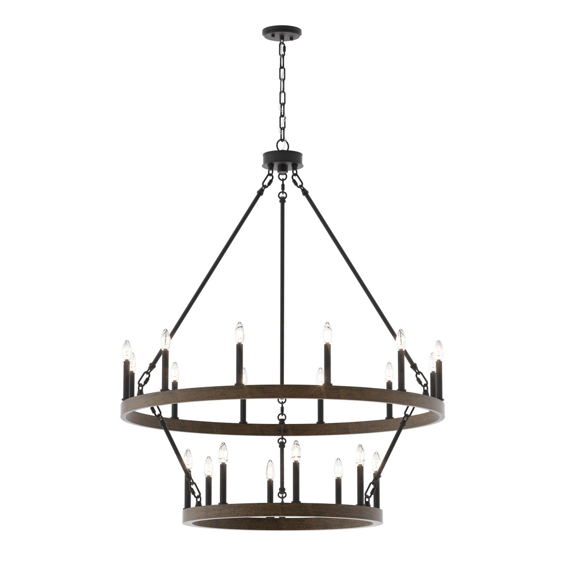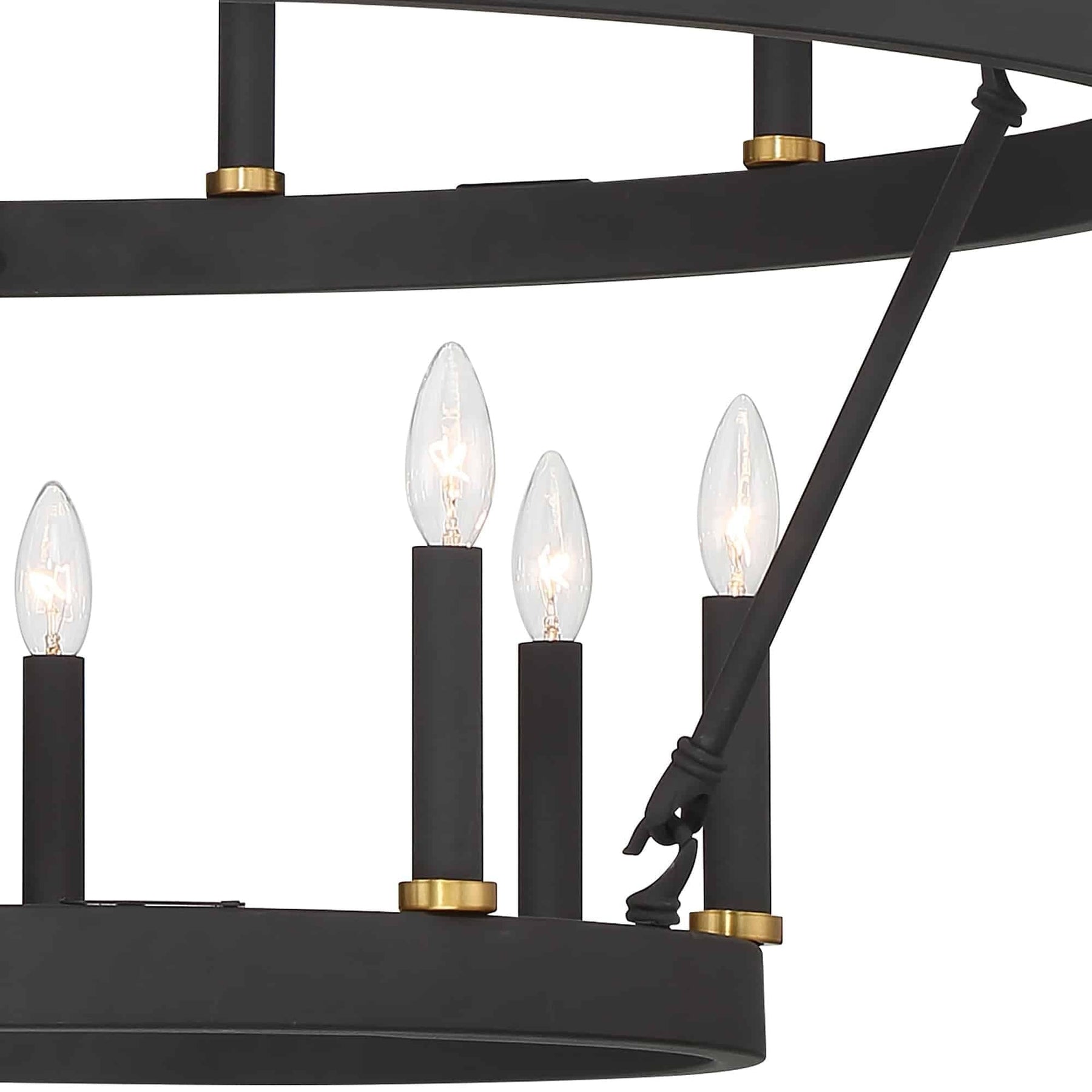 Brighten up your living space with the Farmhouse Rustic Large Wagon Wheel Chandelier, made of steel and available in a variety of colors, this chandelier is durable and adds charm to a variety of styles. With 2-tier wagon wheel and twenty candlestick, which is perfect for fully illuminating a large space like living room, dining room,  and large two story foyer/ entryway. Customize your space with candle-base bulbs for a vintage french country look or stick bulbs for a modern touch.