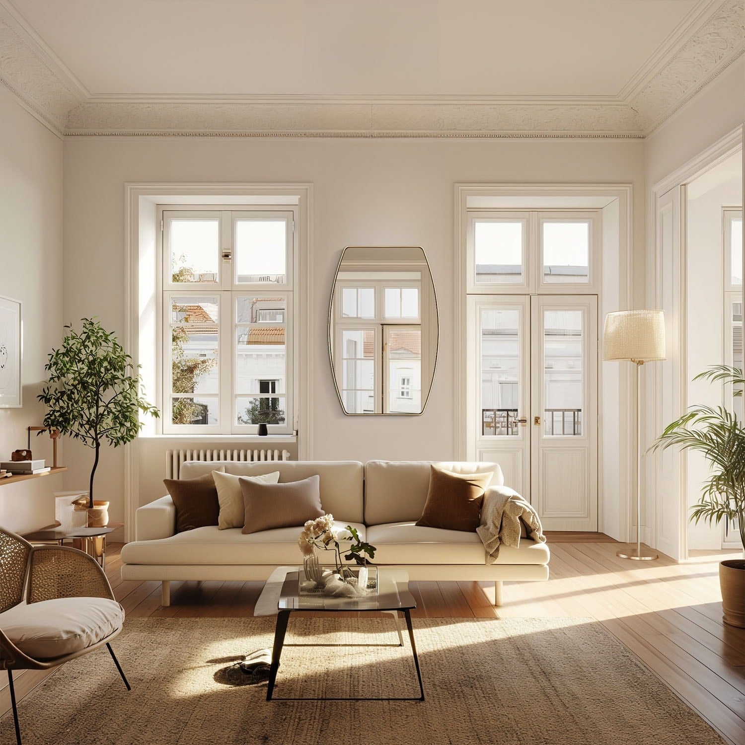 The MacLuu oblong mirror is eye-catching due to its unique shape. It's impressive for its classy look, sleek lines, urban attitude, and pop finish color, and how the mirror coordinates with them all. This mirror suits many home styles and works best in a bathroom or powder room.