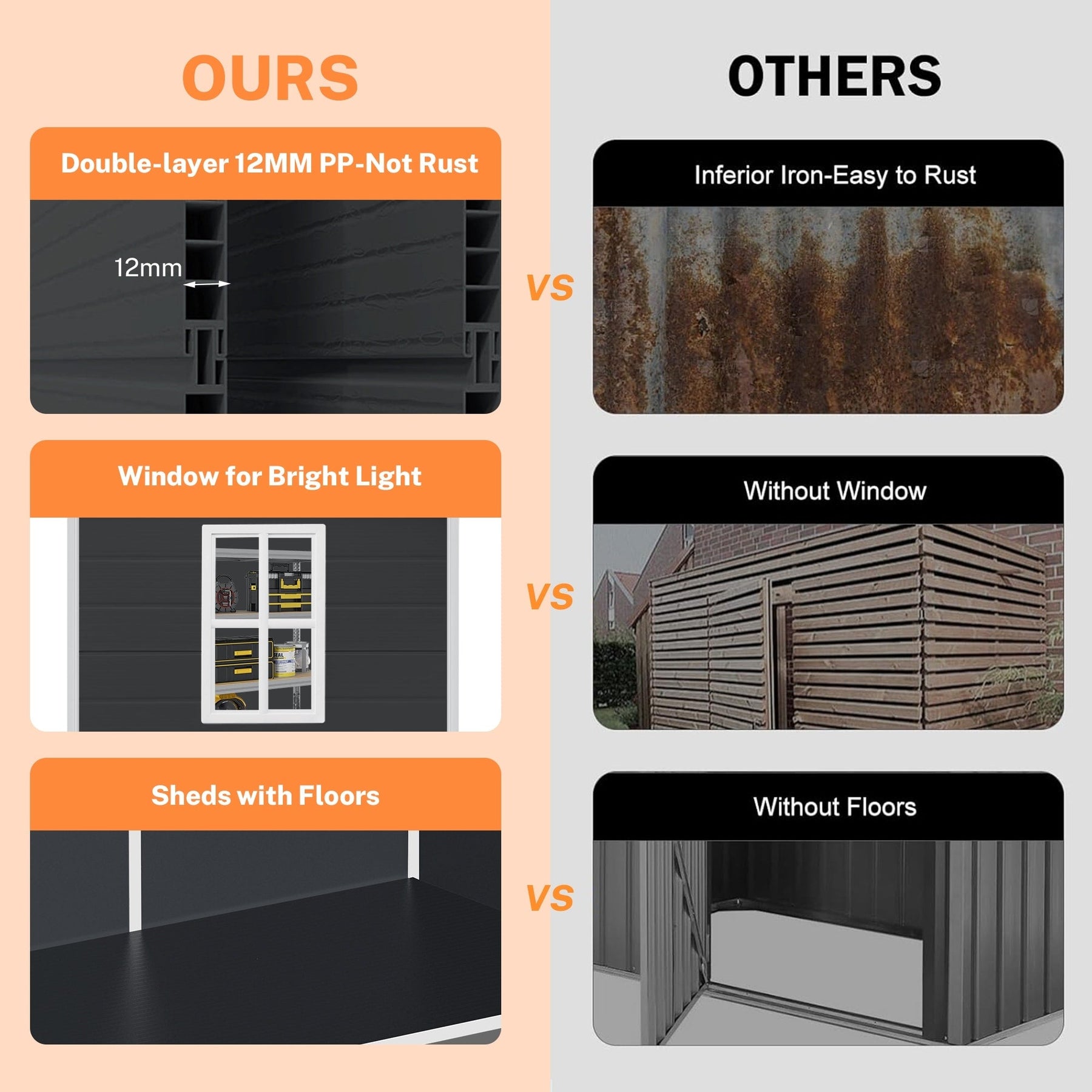 6 ft x 4 ft/6 ft x 8 ft/8 ft x 6 ft/8 ft x 10 ft All-Weather Resin Outdoor Plastic Storage Shed w/Floor, Spire Tool Shed