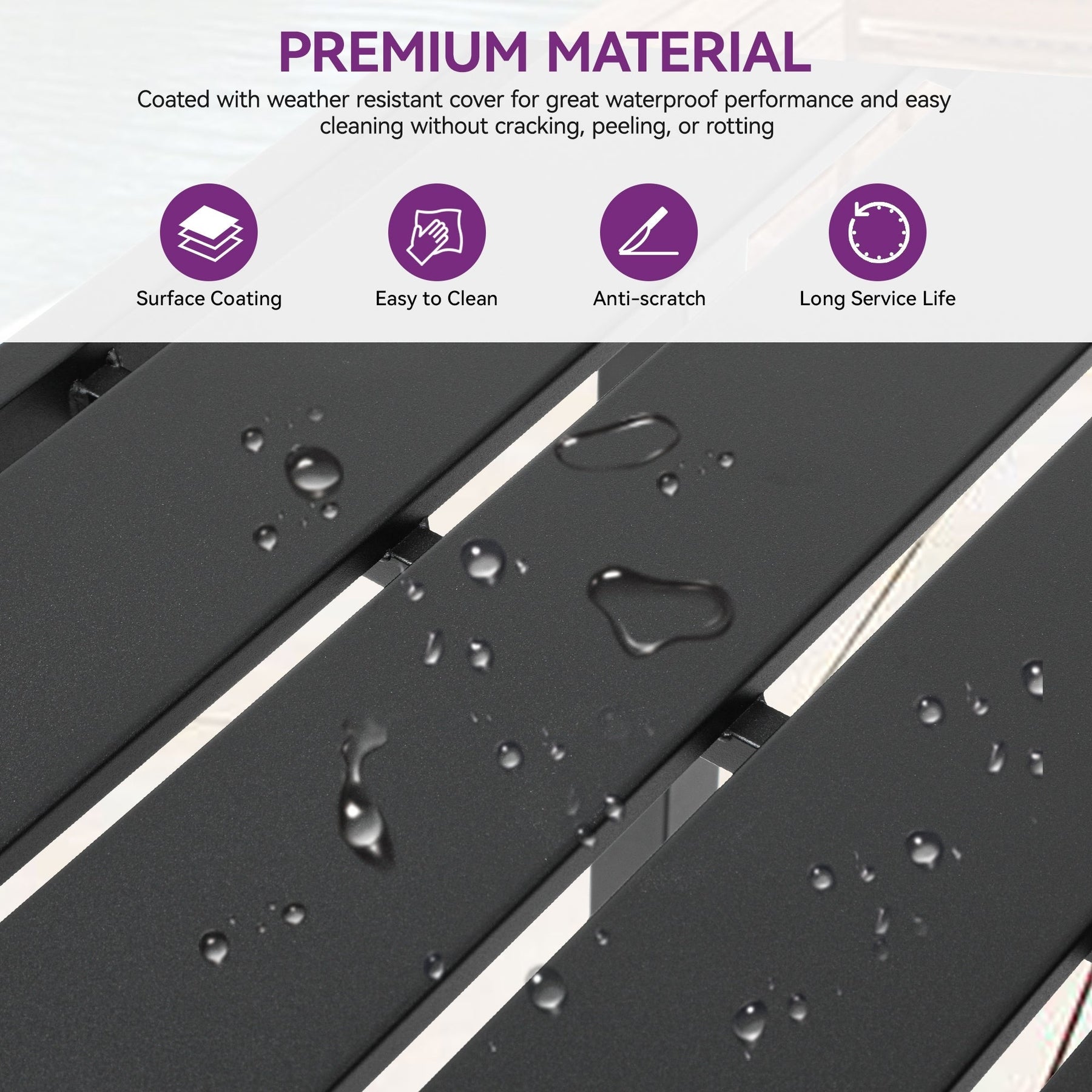 Our Outdoor Bar Table is a sleek and sturdy addition to your outdoor space. Made of high-quality metal with a powder-coated finish, this table is durable and sturdy and boasts 265 lbs weight capacity, thus it can effortlessly withstand heavy loads. Plus, the convenience of having wheels on one side allows for easy mobility and repositioning.