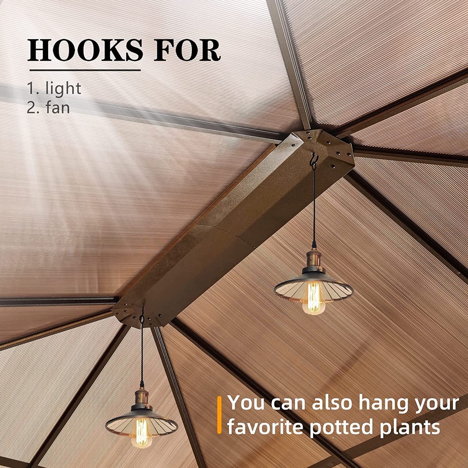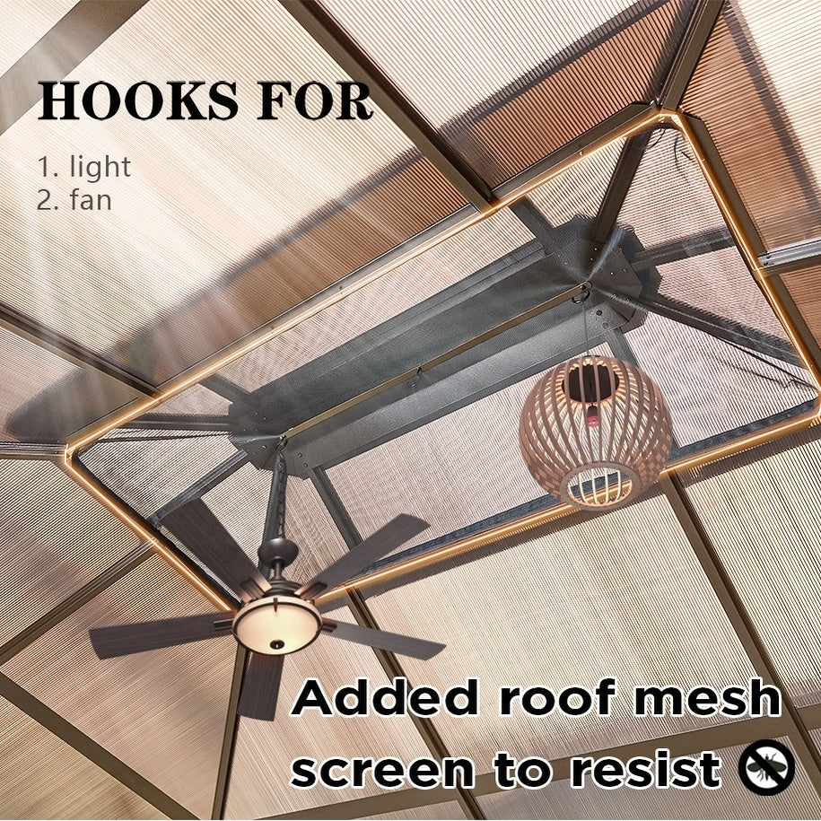 This high-end gazebo effortlessly adapts to various scenarios—from patio BBQ parties and lawn picnics to deck afternoon teas, courtyard grilling, backyard gatherings, or poolside relaxation. Its elegant design provides ideal shade protection, while the open structure not only perfectly accommodates barbecue setups but also fits a 7–9 person dining table and chair set, enhancing your outdoor experience from morning coffee to evening feasts with ultimate comfort and convenience.