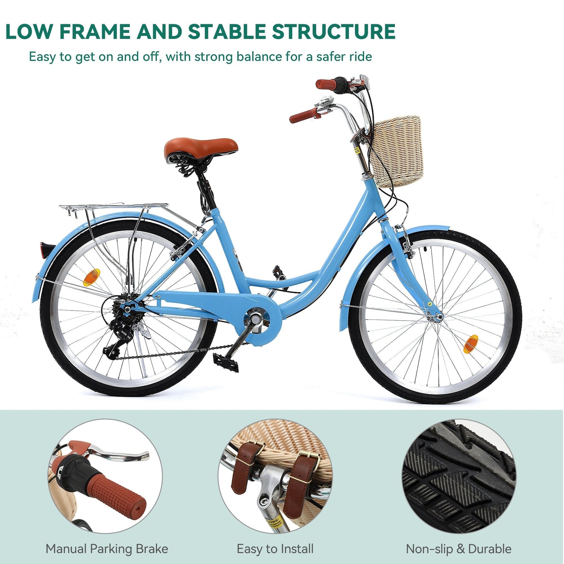 - Our durable 24/26 inch cruiser bike employs a single speed ATA cassette and premium rubber tires to provide strong traction, wear-resistance, and nonslip performance to keep its rider in control even on rugged roads