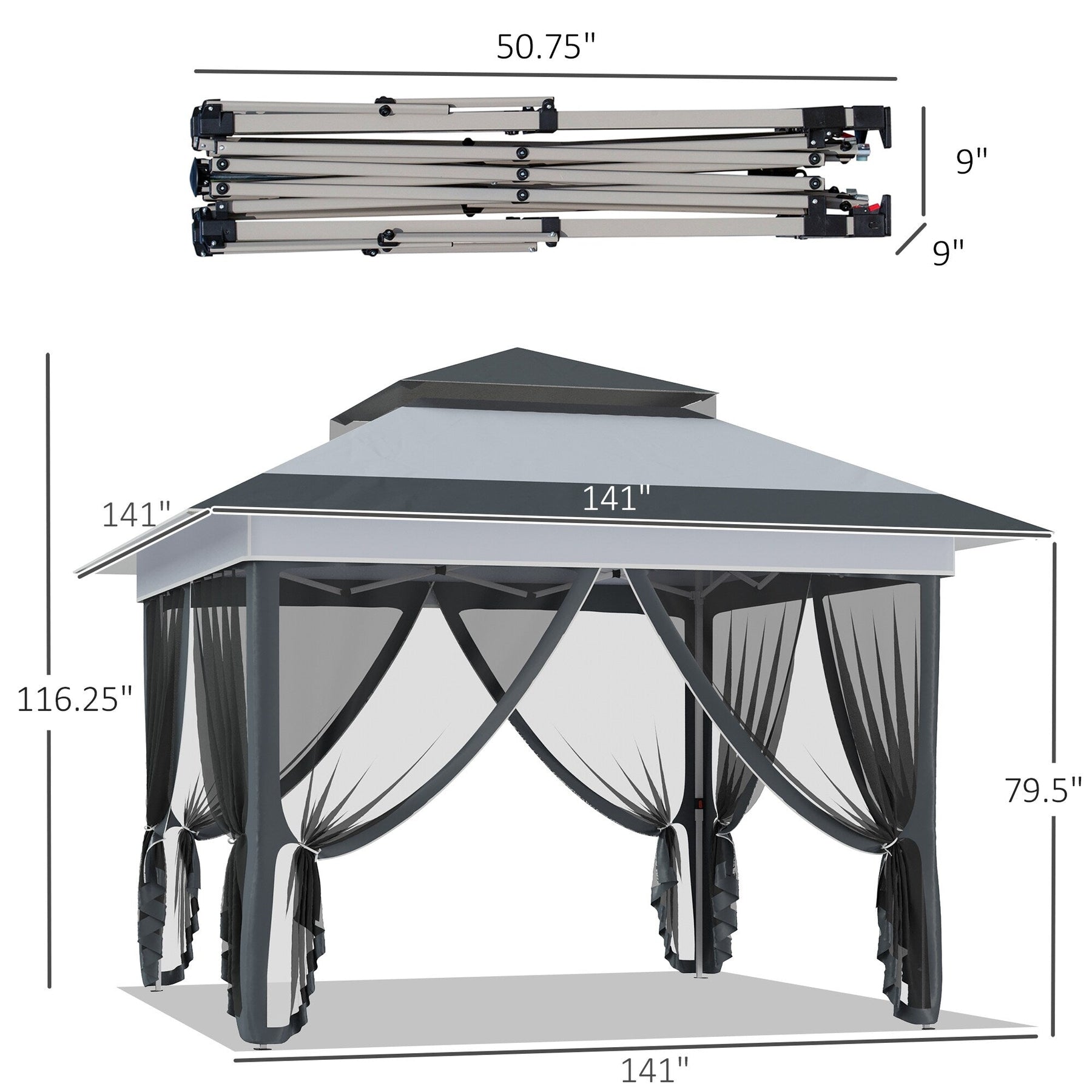 Outsunny 12' x 12' Pop Up Canopy Sun Shade Instant Tent Folding with Mesh Sidewall Netting, 3-Level Adjustable Height