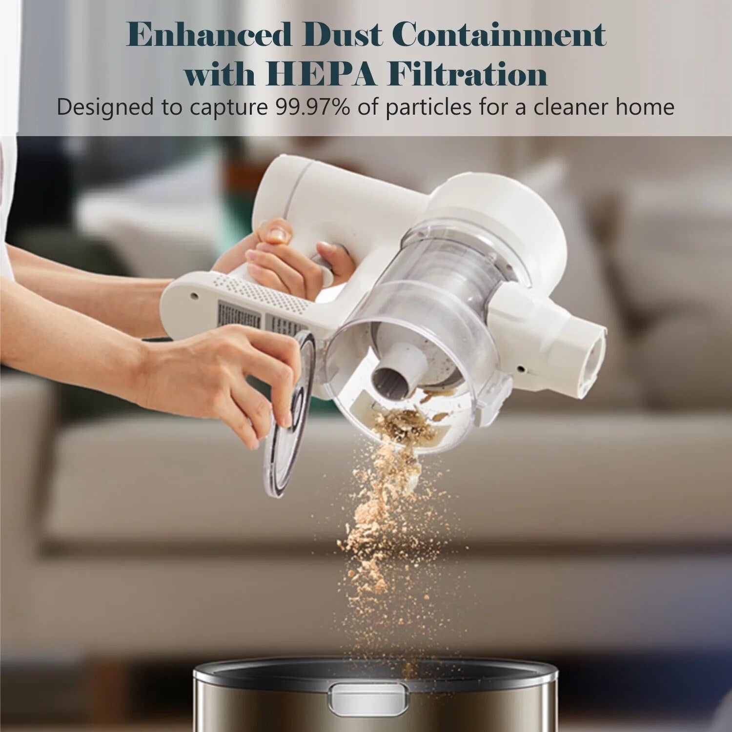 • [HEPA Filtration]: Features a sealed cyclone system with a HEPA filter to trap fine dust and allergens, preventing air pollution. One-touch dust bin emptying ensures quick disposal.